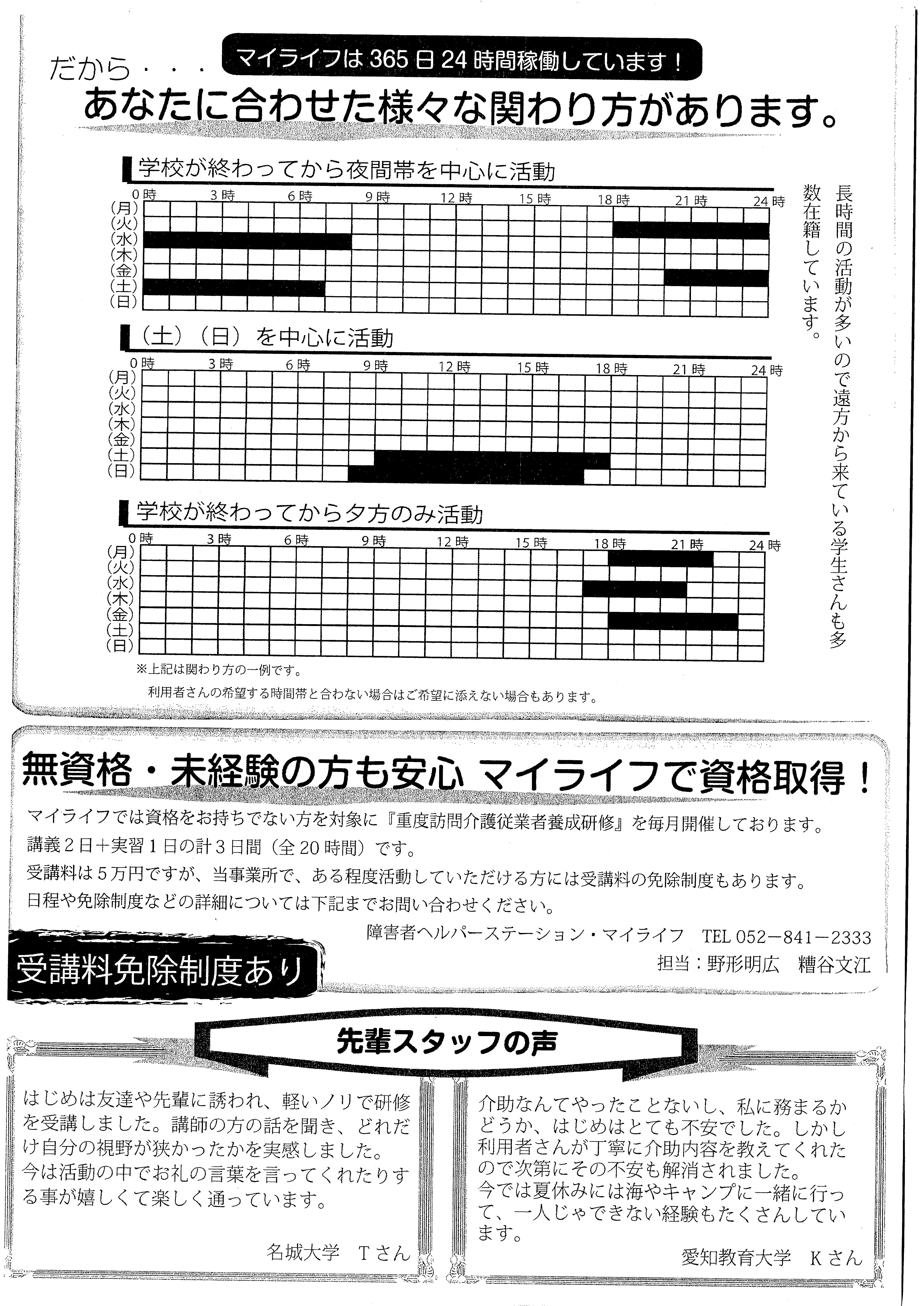 ・問合せ先 : AJU社会福祉法人 AJU自立の家 障害者ヘルパーステーション・マイライフ