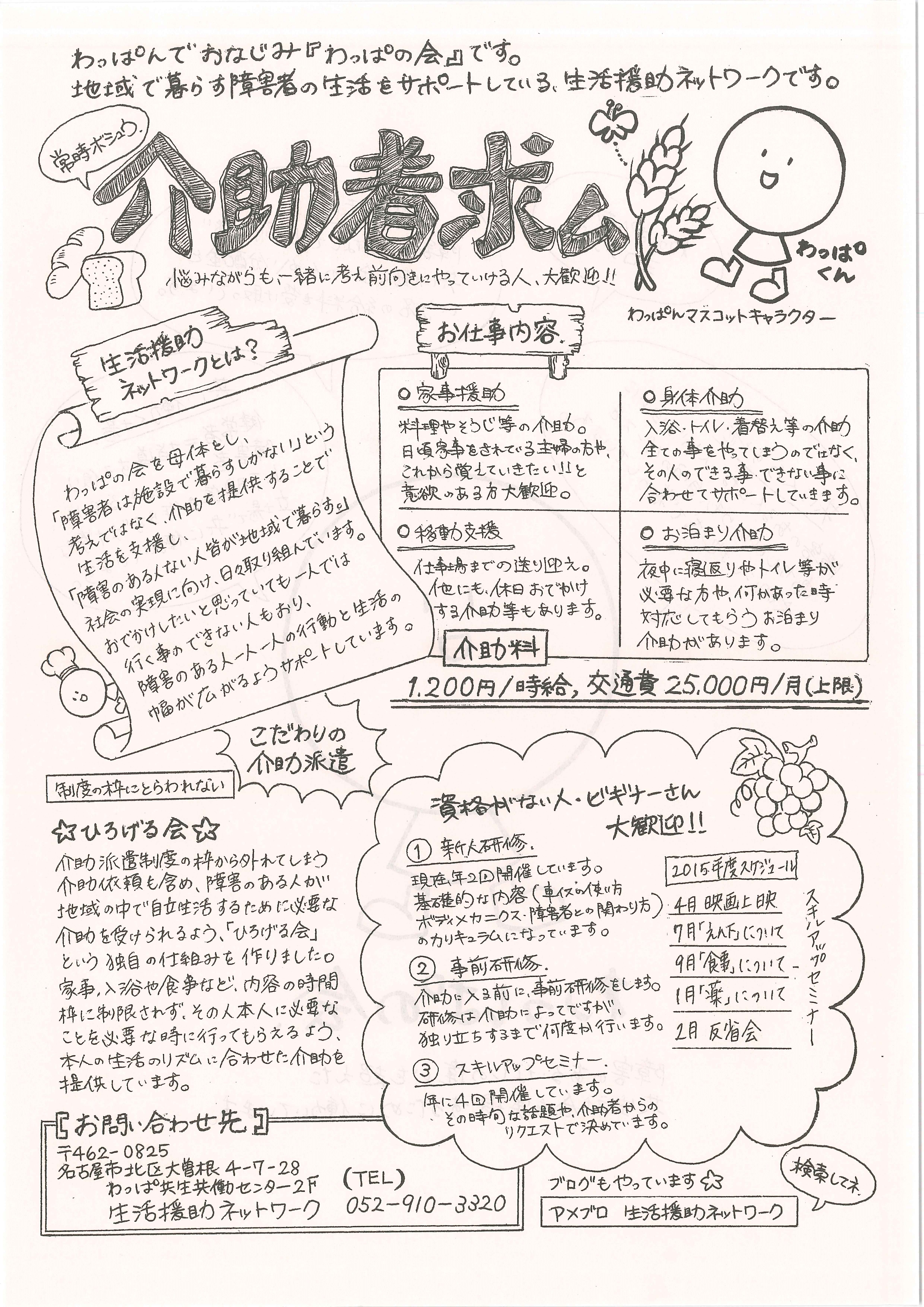 【介助者求ム】・・・*資格がない人・ビギナーさん大歓迎!!