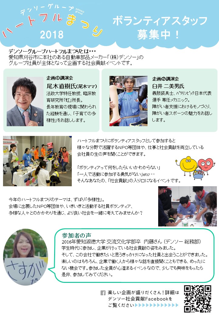 デンソーグループハートフルまつり2018 ボランティア募集