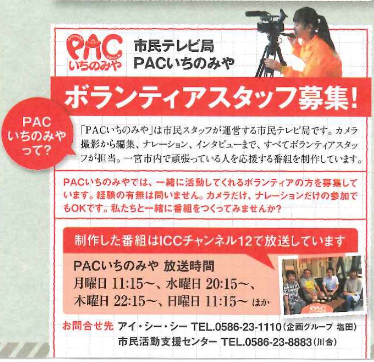 市民テレビ局 PACいちのみや ボランティアスタッフ募集