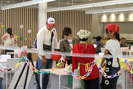 地域の子供たちがお店やさんで店員になり、パン・かき氷・ホットドックなどを